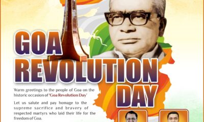 गोवा खबर:गोंयचे राज्यपाल श्री. पी. एस. श्रीधरन पिल्लई हांणी गोंयच्या लोकांक आनी खास करून स्वातंत्र्य सैनिक भावां-भयणांक गोंय क्रांती दिसाची परबीं भेटयल्या. राज्यपाल आपल्या संदेशात म्हणटा,...