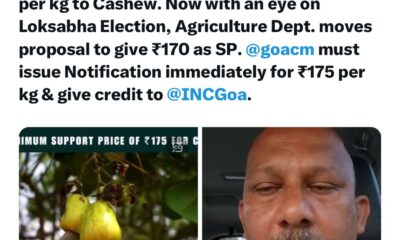 गोवा खबर: गोव्यातील काजूला रु. 175 प्रति किलो आधारभूत किंमत द्यावी ही माझी गेल्या दोन वर्षांची मागणी आहे. आता लोकसभा निवडणुकीवर डोळा ठेवून कृषी विभागाने काजूला...