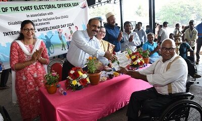 गोवा खबर:गोवा मुख्य निवडणूक अधिकारी कार्यालयाने, डिजेबिलीटी अलायन्स इल्क्लुजीव गोवा यांच्या सहकार्याने आज कदंब बसस्थानक, मडगाव येथे आंतरराष्ट्रीय व्हीलचेअर दिवस तथा मतदार जागृती कार्यक्रमाचे आयोजन केले...