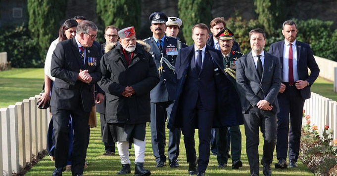 गोवा खबर : पंतप्रधान नरेंद्र मोदी आणि फ्रान्सचे राष्ट्राध्यक्ष इमॅन्युएल मॅक्रॉन यांनी आज सकाळी मार्सिले येथील माझारग्युस युद्ध समाधी स्थळाला भेट दिली. पहिल्या आणि दुसऱ्या महायुद्धात शहीद झालेल्या भारतीय सैनिकांना त्यांनी श्रद्धांजली वाहिली.