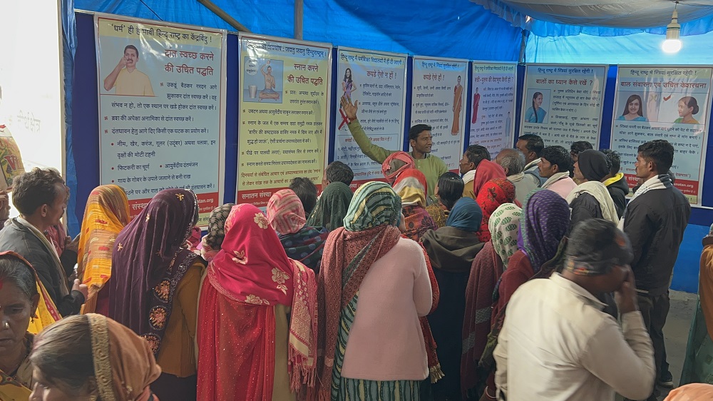 गोवा खबर : महाकुंभक्षेत्री सेक्टर क्र. १९ मधील मोरी-मुक्ती मार्ग चौक येथे लावण्यात आलेल्या सनातनच्या ग्रंथ आणि फलक प्रदर्शनाला साधू-संत, भाविक, तसेच मान्यवर यांच्याकडून उत्सर्फूत प्रतिसाद लाभला. १० जानेवारी ते १२ फेबु्रवारी या कालावधीत या ग्रंथप्रदर्शनाला एकूण ७५ हजारांहून भाविकांनी भेट दिली. यामध्ये भारतातील अनेक राज्यांसह अमेरिका, रशिया, ऑस्ट्रेलिया, बांगलादेश, नेपाळ आदी देशांतील भाविकांचा समावेश आहे.