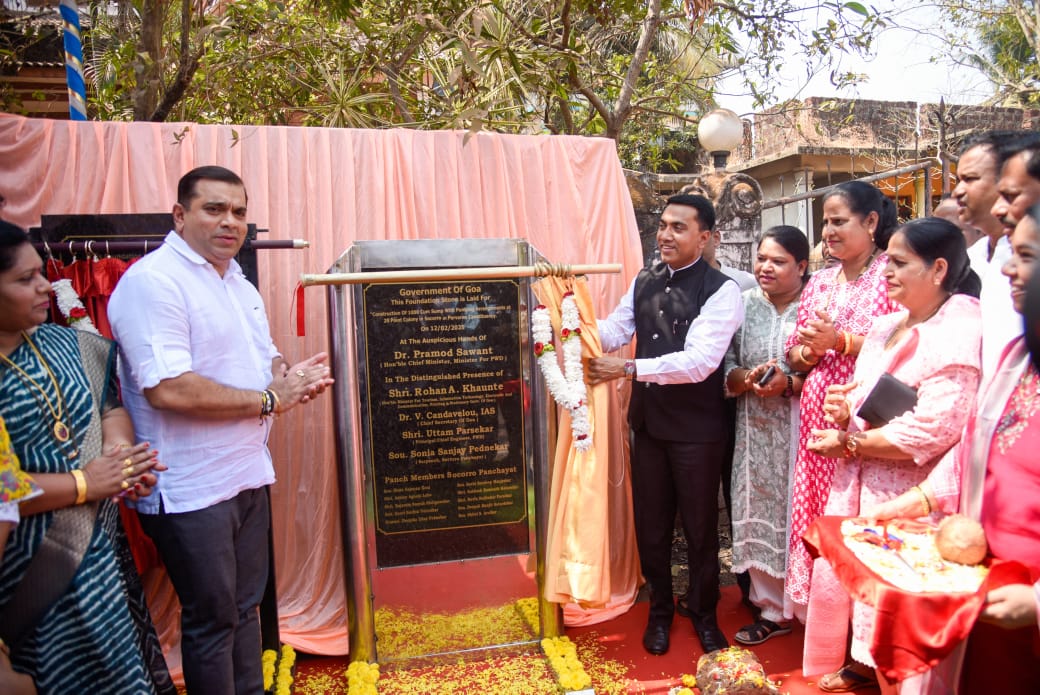 Goa Khabar : The foundation-laying ceremony for the much-awaited 1000m³ sump with pumping arrangements at 20 Point Colony, Socorro, Porvorim Constituency was done at the hands of Hon’ble Chief Minister, Dr Pramod Sawant and the Hon’ble Minister for Tourism, Rohan Khaunte, in the presence of Soccoro Sarpanch, Soniya Pednekar , PCE, Uttam Parsekar, Panch members and other Government officials. This crucial infrastructure project, initiated by the Public Works Department (PWD), Government of Goa, aims to enhance water storage and supply capacity in the fast-developing region of Porvorim.