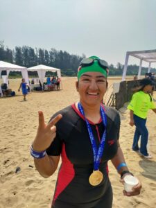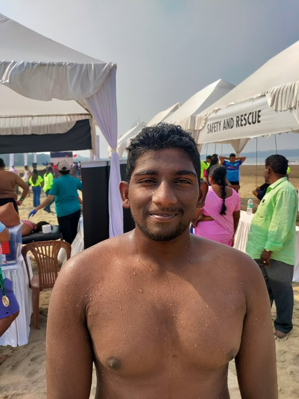George swam the distance in 2:42:18 hrs to stand first, while Deepika finished her race in 3:53 hrs.  Notably, Omvir Singh, Inspector general of police, Goa state also finished his 5km sea race in a commendable 2:49 hrs.