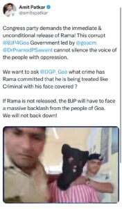 He said, If Rama is not released immediately, the Congress party, along with the people of Goa, will ensure that this corrupt BJP government faces a massive backlash. We will not allow the ruling dispensation to trample upon fundamental rights and democratic values.The Congress party stands firm in its commitment to protecting the rights of Goans and will continue to fight against BJP’s authoritarianism and injustice.