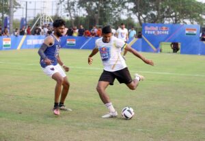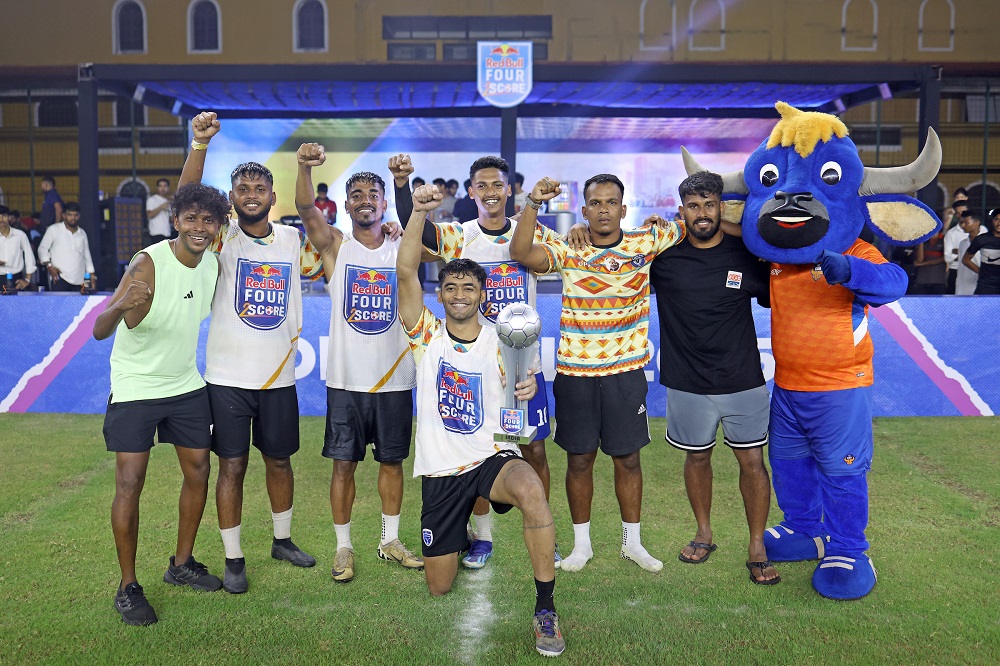Goa Khabar : The Red Bull Four 2 Score National Finals concluded with a spectacular display of football, as amateur players from across the country battled it out for the coveted title and the opportunity to represent India on the global stage. The high-energy 4v4 tournament lived up to its reputation, delivering intense action and showcasing the immense talent of grassroots footballers. Four of FC Goa players played an entertaining exhibition match versus four national finalist captains representing their teams on the big stage. In the finals, Team Boom Boom Goa emerged victorious defeating all other teams to bag the bragging rights and a chance to represent India at the World Finals.