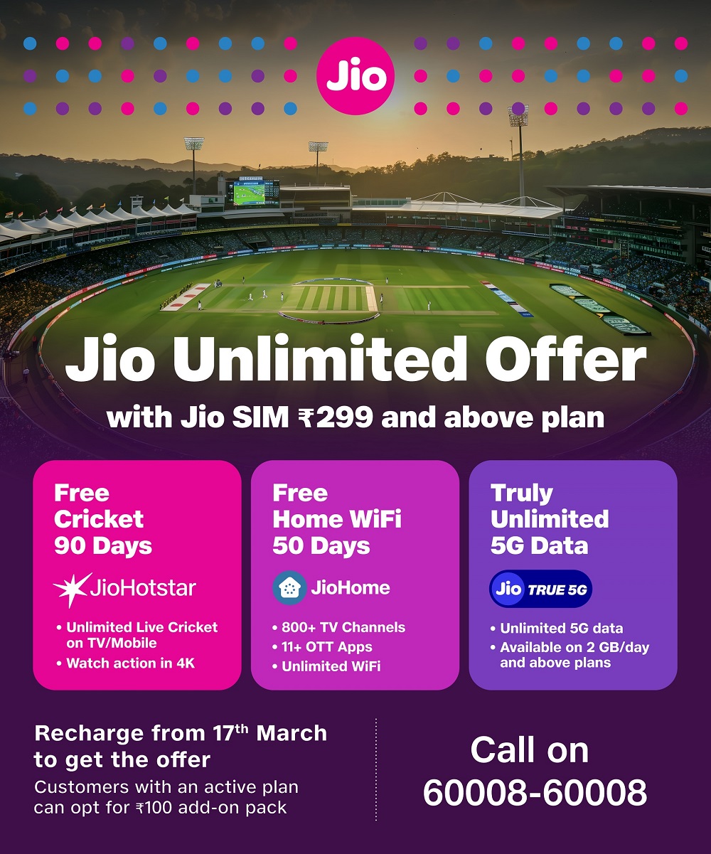 या अनलिमिटेड क्रिकेट ऑफरमध्ये ग्राहकांना TV किंवा मोबाइलवर 90 दिवसांचे मोफत जिओहॉटस्टार सबस्क्रिप्शन मिळेल आणि तेही 4K क्वालिटीमध्ये. म्हणजेच, ग्राहक 22 मार्चपासून सुरू होणाऱ्या IPL क्रिकेट सीझनचा आनंद मोफत घेऊ शकतात. जिओहॉटस्टार पॅक 22 मार्च 2025 पासून पुढील 90 दिवसांसाठी वैध असेल.