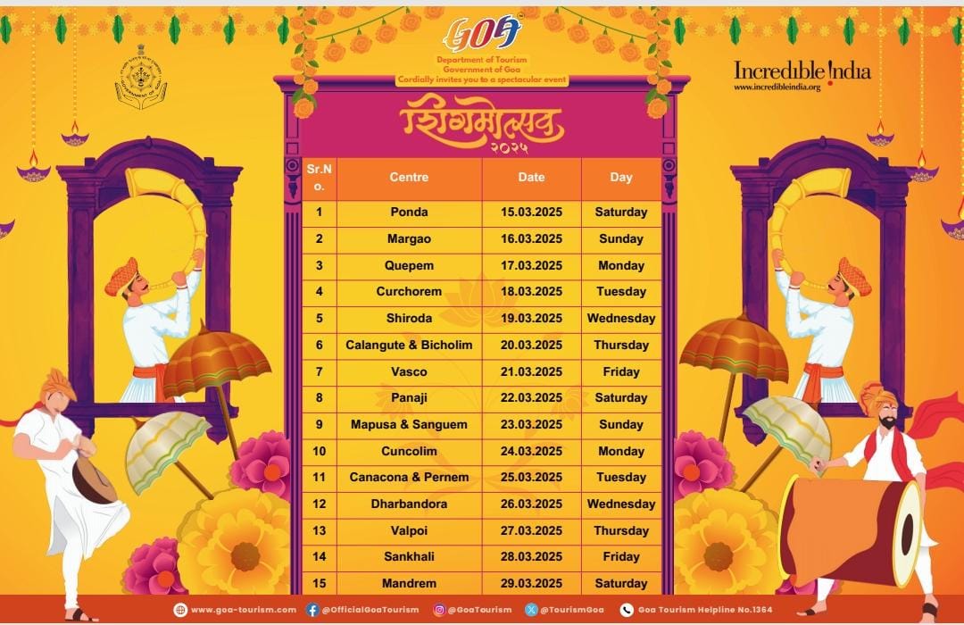 गोवा खबर ADVT Day 15 Celebrate the vibrant #ShigmotsavParade2025 as it travels across Goa from March 15-29 Published 12 months ago on March 29, 2025 By Devendra Walavalkar Spread the love Celebrate the vibrant #ShigmotsavParade2025 as it travels across Goa from March 15-29, bringing traditional floats, folk performances, and festive cheer to 15 locations. Experience Goa’s rich cultural heritage like never before! #GoaTourism #RegenerativeTourism #GoaBeyondBeaches #ShigmoGoa2025 #Shigmotsav2025 #Goa Related Topics:Featured Up Next DITE&C launched Goa Open Innovation Challenge 2025 an opportunity to pilot your solutions Don't Miss म्यानमार आणि थायलंडमधील भूकंपाबद्दल पंतप्रधानांनी व्यक्त केली चिंता Devendra Walavalkar Continue Reading You may like Guardian Angel SC Stun Goa Police with Hard-Fought Victory कोकणातील गोड्या पाण्यातील मासेमारीसाठी जलाशय आणि अमृत सरोवरांचा वापर राष्ट्रपतींची अयोध्या येथील श्री राम जन्मभूमी मंदिराला भेट; रामलल्लाचे दर्शन मुंबई सीमा शुल्क विभागाच्या एअर इंटेलिजन्स युनिटने छत्रपती शिवाजी महाराज आंतरराष्ट्रीय विमानतळावर अंमली पदार्थांच्या तस्करीचे प्रयत्न हाणून पाडले गोव्यासाठी हवामान इशारा : आज वादळी वाऱ्यासह पावसाची शक्यता AAP’s Geetesh Naik Appeals Bhandari Samaj To Vote For Someone Who Understands Struggles of a Common Man, and Reject Familyraj