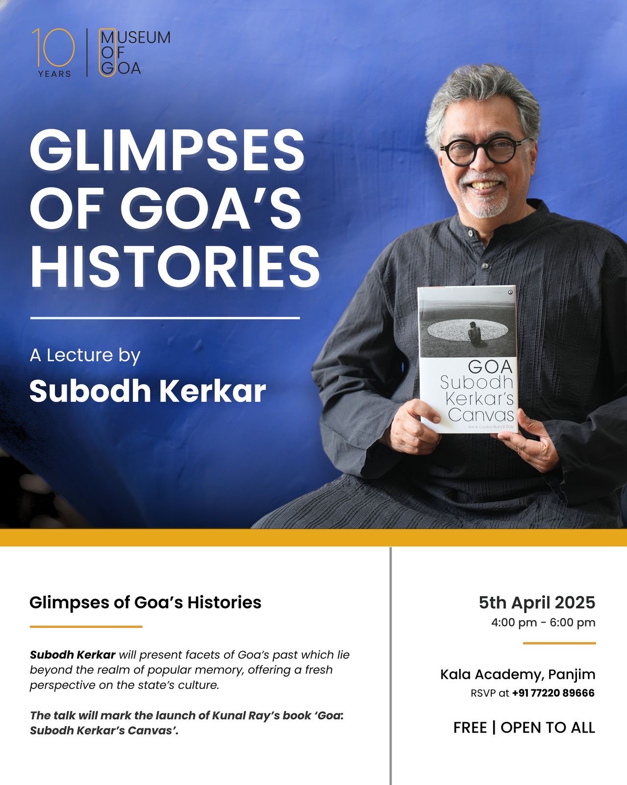 Dr Subodh Kerkar lecture titled ‘Glimpses of Goa’s Histories’ will be held at Kala Academy on 5 April 2025 at 4.00 PM.