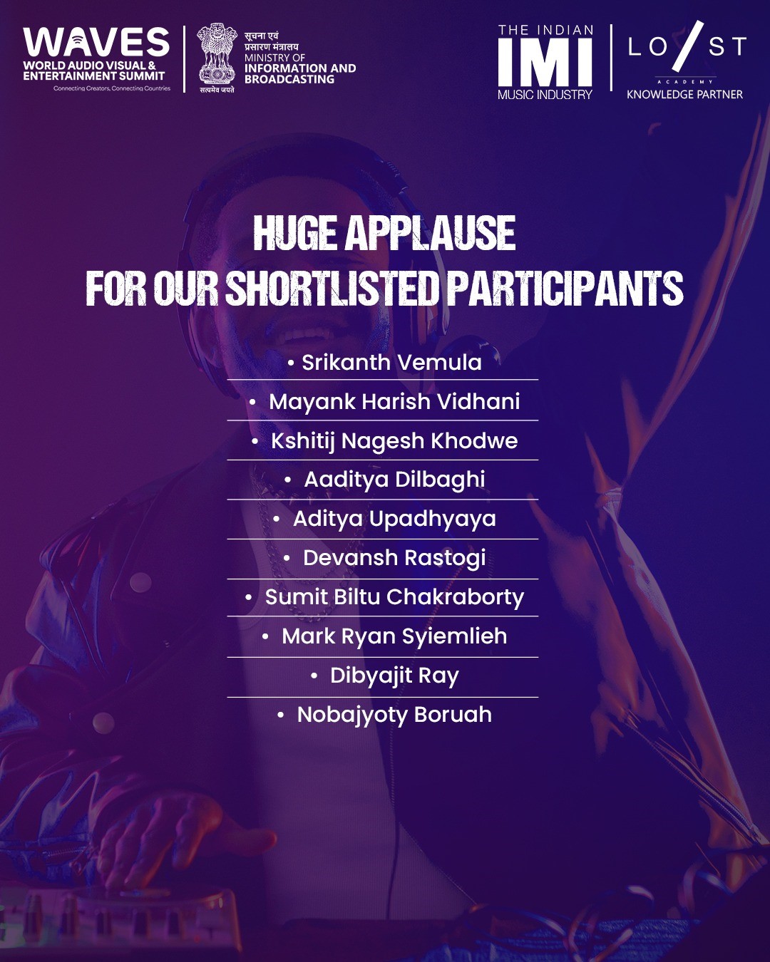 1 ते 4  मे 2025  दरम्यान मुंबईत होणाऱ्या वेव्हजच्या जागतिक मंचावर होणाऱ्या ग्रँड फिनालेमध्ये थेट सादरीकरण करण्यासाठी, अत्यंत कठोर निवड प्रक्रियेनंतर आणि शेकडो प्रवेशिकांमधून  खालील दहा कलाकारांची निवड करण्यात आली आहे: