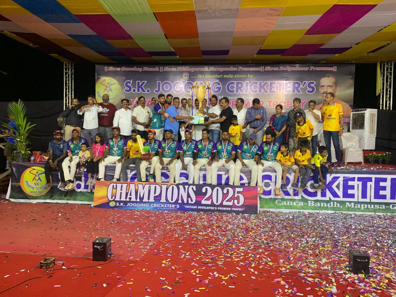 यावेळी व्यासपीठावर भारताचे राज्यसभा खासदार व गोव्याचे सुपुत्र श्री. सदानंद शेट तानावडे, या स्पर्धेचे मुख्य प्रायोजक श्री. शिवशंकर मयेकर, नागरिक पुरवठा खात्याचे साहाय्यक निर्देशक श्री. तुलसीदास दाभोळकर, काणका पंचायतिच्या सरपंचा सौ. आरती च्यारी, एस. के. जॉगिंग क्रिकेटर्सचे अध्यक्ष श्री. महेश कोरगावकर व इतर उपस्थित होते. सदर स्पर्धेच्या अंतिम सामन्याचे नाणेफेक म्हापसा मतदार संघाचे आदरणीय आमदार श्री. जोशुआ डिसौझा यांच्या हस्ते झाले. तसेच सदर स्पर्धा उद्घाटन भारताचे खासदार श्री. श्रीपाद नाईक यांच्या हस्ते झाले. सूत्रसंचालन श्री. यांनी केले, तर स्वागतपर भाषण व आभार श्री. महेश कोरगावकर यांनी मानले. यावेळी श्री. सदानंद शेट तानावडे, या स्पर्धेचे मुख्य प्रायोजक श्री. शिवशंकर मयेकर यांची समयोचित भाषणे झाली.