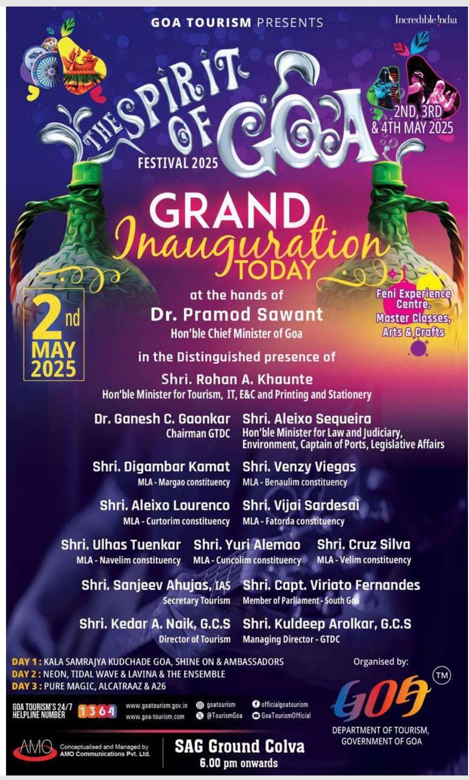 ADVT Get ready for the Grand Inauguration of the Spirit of Goa Festival – happening from May 2nd to 4th at SAG Grounds, Colva!