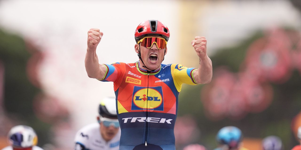 Danish powerhouse Pedersen launched from the wheel of team-mate Mathias Vacek, exiting the final bend before holding off a late surge by Belgium’s Wout van Aert (Visma-Lease a Bike). Venezuela’s Orluis Aular (Movistar) took third place while Britain’s Tom Pidcock (Q35.6 Pro Cycling) finished fifth on his Giro debut.