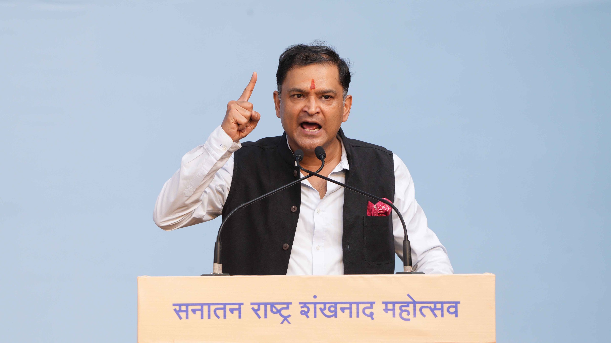 ‘सनातन राष्ट्र शंखनाद महोत्सवा’च्या ‘सनातन राष्ट्र आणि सच्चिदानंद परब्रह्म डॉ. जयंत आठवले यांचे विविधांगी कार्य’ या सत्रात ‘सनातन राष्ट्राची सुरक्षा’ या विषयावर गौरव आर्य यांनी विचार मांडले.