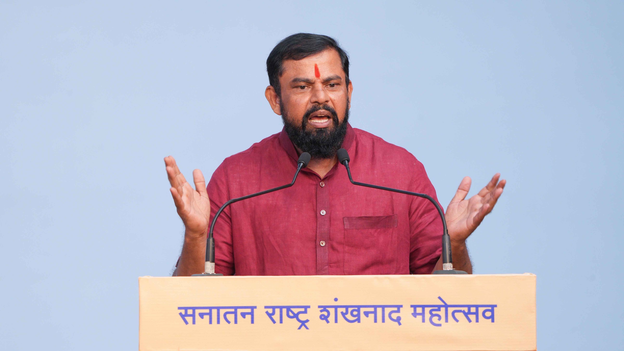 गोवा खबर : हिंदूंनी आपल्या मुलांना स्वसंरक्षणासाठी प्रशिक्षण द्यायला हवे. जो लढेल तोच वाचेल. जो लढणार नाही त्यांच्यासाठी येणारा काळ खूप कठिण आहे. त्यामुळे येथून जाण्यापूर्वी समस्त हिंदूंनी एक असा संकल्प घ्या की, आगामी काळात भारताला हिंदु राष्ट्र बनवण्यासाठी आवश्यक ते प्रत्येक पाऊल उचलू आणि संघटितपणे राहू, असे आवाहन तेलंगणा येथील भाजपचे प्रखर हिंदुत्वनिष्ठ आमदार टी. राजासिंह यांनी केले. ते ‘सनातन राष्ट्र शंखनाद महोत्सवा’त बोलत होते.