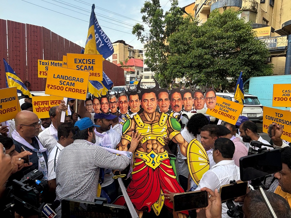All the various scams of the Sawant Sarkar were announced along with their estimated amounts. AAP alleged that this amount exceeds Rs. 10,000 crores.