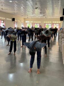 A brief yet meaningful assembly program was conducted by the students of Std. XII Science, which included an interactive PowerPoint presentation and a skit, both emphasizing the importance and benefits of Yoga in daily life.