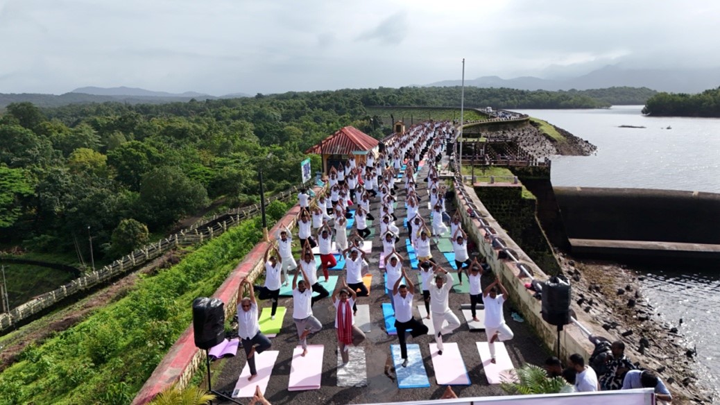 The Central Bureau of Communication (CBC), Goa, in collaboration with the South Goa District Administration and District Police, organized the Yoga Sanguem event on Saturday, 21st June, as part of the nationwide celebration of Yoga Day. The event, held at the crest of the picturesque Selaulim Dam, was beautifully captured by drone footage, showcasing the breathtaking location.