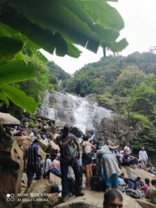 The trail from the temple to the waterfall offers an immersive nature experience, with dense forests, flowing streams, birds, butterflies, and a serene natural atmosphere. The waterfall cascades into a serene pool, inviting trekkers to unwind with a refreshing dip in its cool, clear waters.