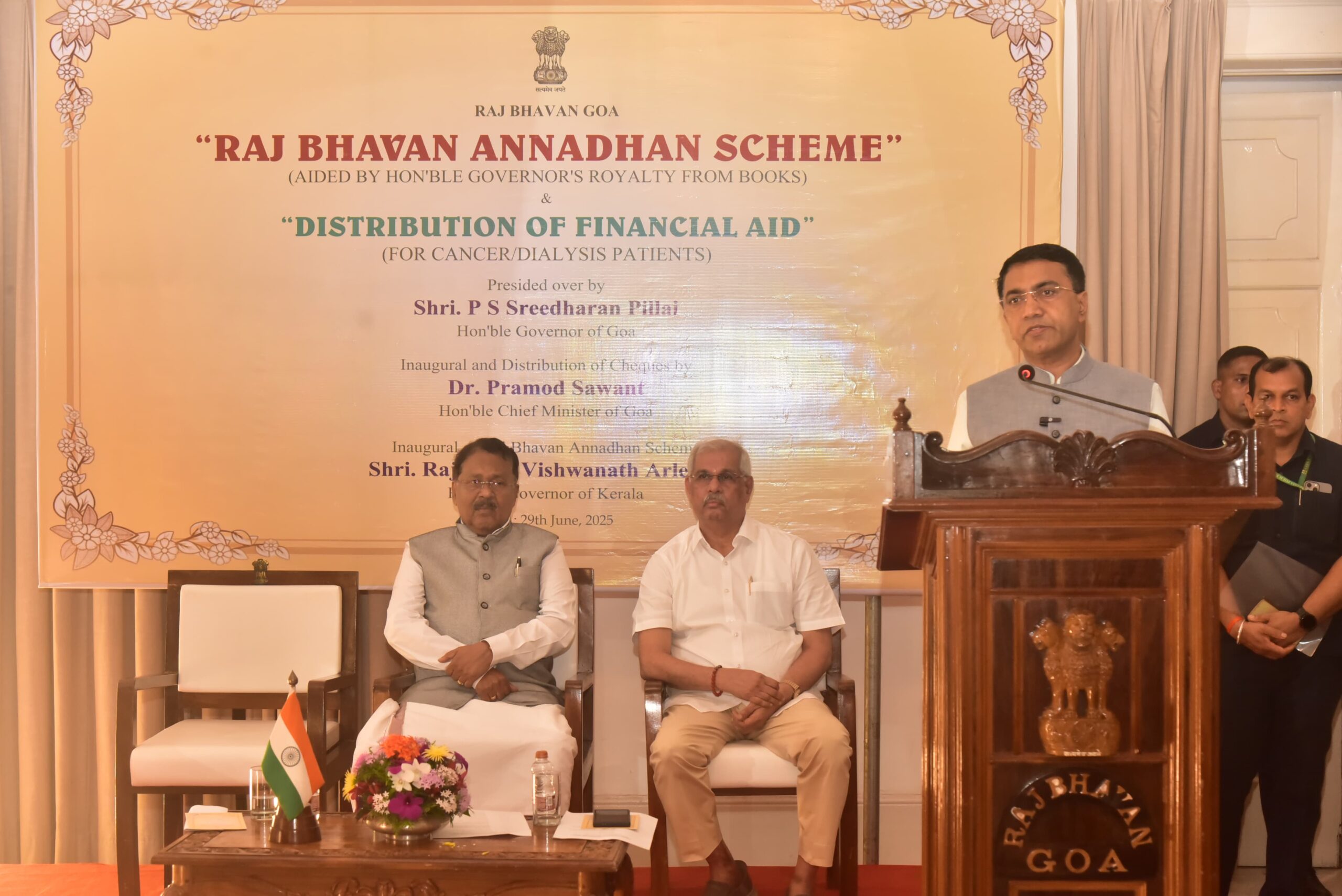 Goa Khabar : The ‘Raj Bhavan Annadhan’ scheme was launched at the hands of Rajendra Arlekar, Governor of Kerala in the presence of Chief Minister, Dr Pramod Sawant. P.S.Sreedharan Pillai, Governor of Goa presided the launching ceremony.
