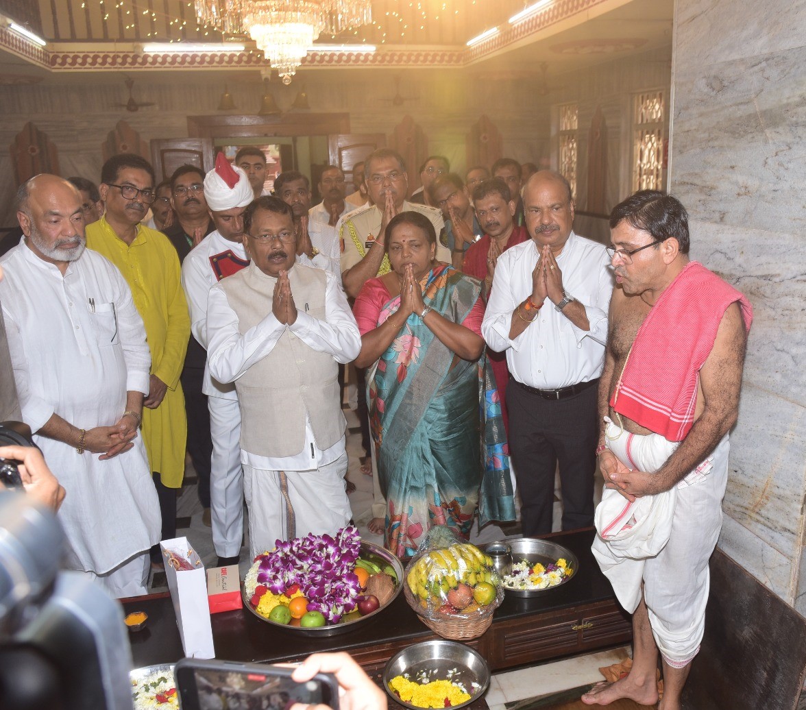 श्री महालक्ष्मी मंदिरात आगमन होताच राज्यपालांचे श्री गौरीश धोंड आणि इतर समिती सदस्यांनी स्वागत केले. मंदिर परिसरात शाल अर्पण करून समितीच्या वतीने राज्यपालांचा सत्कार करण्यात आला.