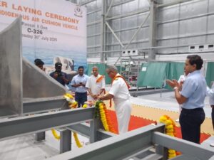 Goa Khabar : Indian Coast Guard (ICG) marked a major milestone in its pursuit of enhanced maritime capability with the commencement of construction of its first Indigenously built Air Cushion Vehicle (ACV) at Chowgule and Company Private Limited, Goa. This follows the signing of a contract with the Ministry of Defence on 24 Oct 24 for the construction of six ACVs, underlining the ICG’s continued focus on operational self-reliance.