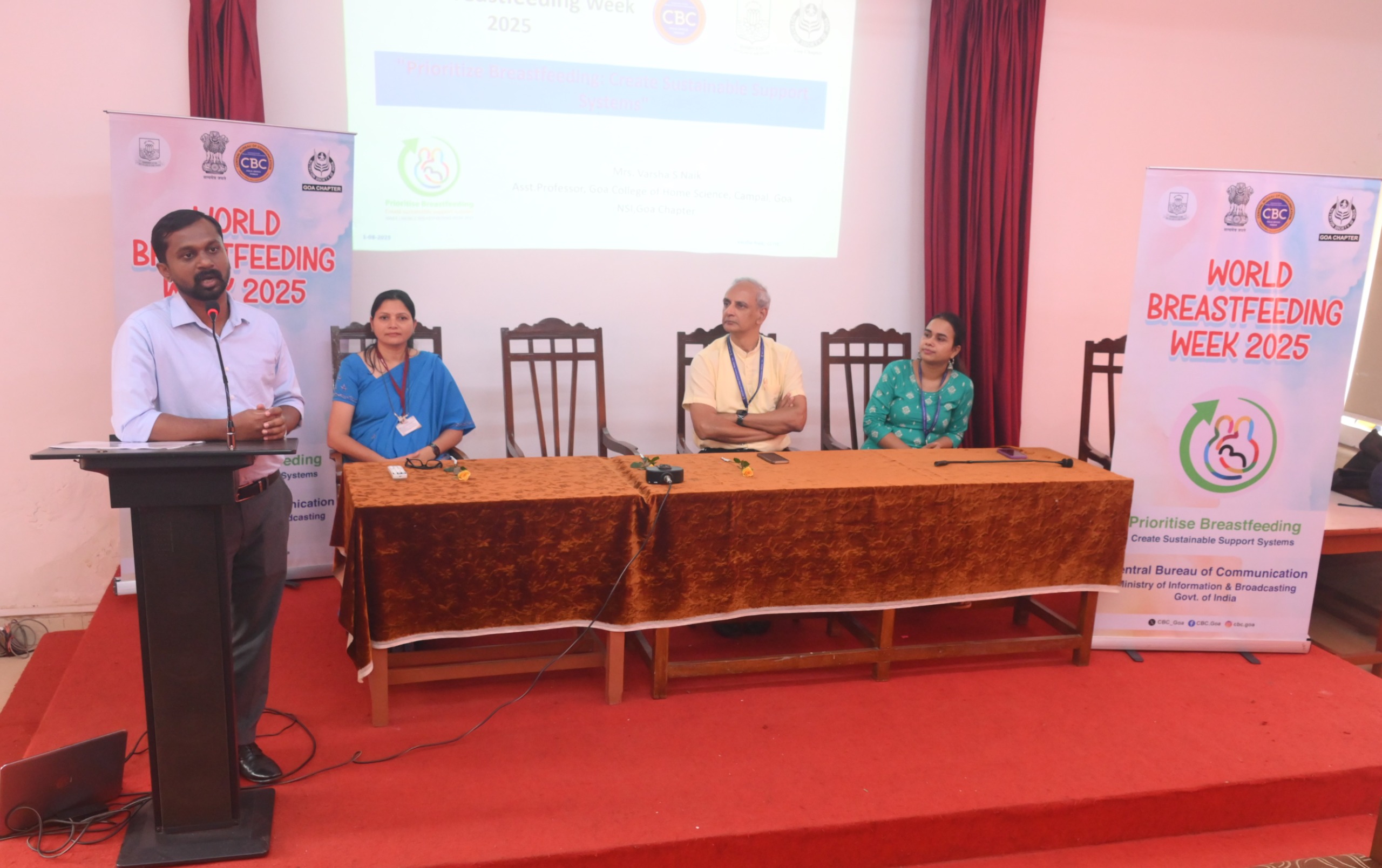 Goa Khabar : The Central Bureau of Communication (CBC), Goa, under the Ministry of Information and Broadcasting, Government of India, in collaboration with the Nutrition Society of India – Goa Chapter and the Goa College of Home Science, organised a program on the occasion of World Breastfeeding Week 2025 at Dhempe College of Arts and Science, Miramar today, 6th August.