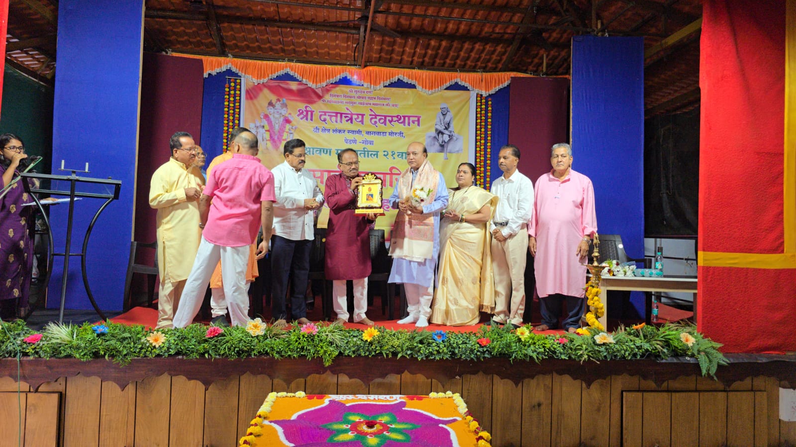 कार्यक्रमाच्या व्यासपीठावर माजी आमदार दयानंद सोपटे, देवस्थान समिती अध्यक्ष दिलीप बागकर, संघ अध्यक्ष बाबी बागकर, पंडित महादेव पेडणेकर, मृण्मयी पेडणेकर, ज्येष्ठ सत्कारमूर्ती प्रकाश च्यारी, माजी मुख्याध्यापक दयानंद मांद्रेकर आदी उपस्थित होते. सूत्रसंचालन सिया परब यांनी केले.