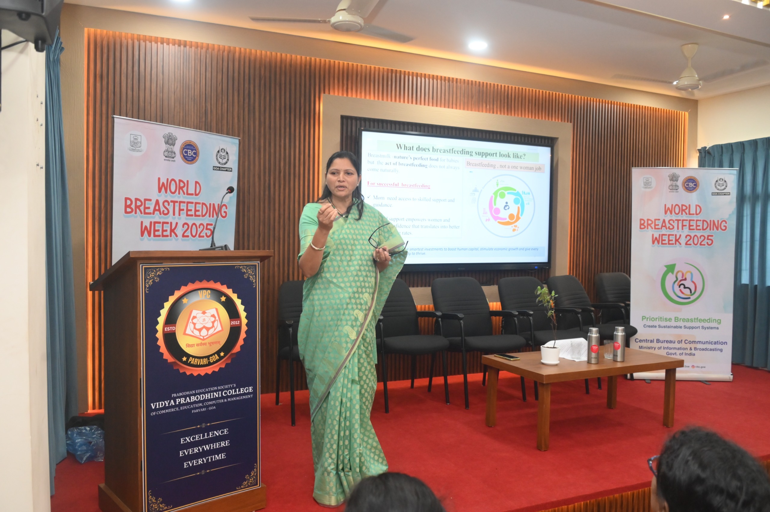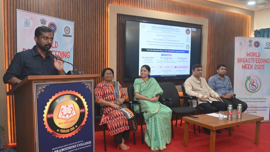विद्या प्रबोधिनी महाविद्यालयाच्या उपप्राचार्य डॉ. उज्ज्वला हणजुणकर यांच्या स्वागतपर भाषणाने सत्राची सुरुवात झाली. उपस्थितांना संबोधित करताना सीबीसी गोव्याचे प्रचार अधिकारी रियास बाबू म्हणाले, स्तनपानाला प्राधान्य द्या: शाश्वत आधार व्यवस्था तयार करा” ही या वर्षीच्या जागतिक स्तनपान सप्ताहाची संकल्पना माता आणि बालकांना यशस्वी स्तनपानासाठी आवश्यक असलेली मदत मिळावी यासाठी आपण घेत असलेल्या सामूहिक जबाबदारीची आठवण करून देते. येणाऱ्या पिढीसाठी शाश्वत आधारप्रणाली तयार करणे ही आपली जबाबदारी आहे. पोषण, आरोग्य आणि भावी पिढ्यांसाठी ही सामाजिक बांधिलकी आहे. भारत सरकारची संवाद शाखा म्हणून सीबीसी अशा महत्त्वपूर्ण सार्वजनिक आरोग्य संदेशांचा प्रचार करण्यासाठी तसेच नागरिकांमध्ये जागरूकता निर्माण करण्यासाठी वचनबद्ध आहे, असे ते म्हणाले.