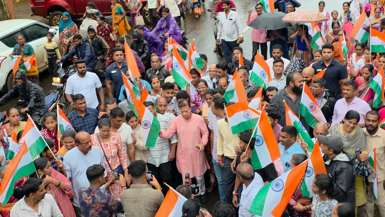 गोवा खबर : भर पावसातही वाळपईत मंगळवारी भव्य तिरंगा यात्रा काढण्यात आली. परिसरातील नागरिक, महिला, युवक आणि विद्यार्थी हातात राष्ट्रीय ध्वज घेऊन मोठ्या संख्येने सहभागी झाले. देशभक्तीचा उत्साह पावसाच्या सरींमध्येही ओसंडून वाहत होता.