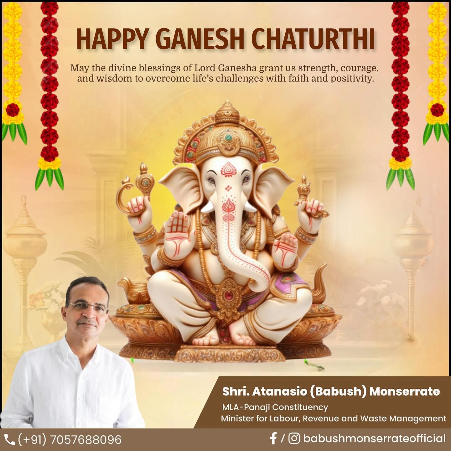जाहिरात महसूल मंत्री बाबुश मोन्सेरात यांच्याकडून गणेश चतुर्थीच्या हार्दिक शुभेच्छा! Published 7 months ago on August 31, 2025 By Devendra Walavalkar Spread the love महसूल मंत्री बाबुश मोन्सेरात यांच्याकडून गणेश चतुर्थीच्या हार्दिक शुभेच्छा! Related Topics:Featured Up Next गोवा पर्यटन खात्याकडून गणेश चतुर्थीच्या हार्दिक शुभेच्छा! Don't Miss शिवसेना उबाठा गोवा राज्य प्रमुख जितेश कामत यांच्या कडून गणेश चतुर्थीच्या हार्दिक शुभेच्छा! Devendra Walavalkar Continue Reading You may like Guardian Angel SC Stun Goa Police with Hard-Fought Victory कोकणातील गोड्या पाण्यातील मासेमारीसाठी जलाशय आणि अमृत सरोवरांचा वापर राष्ट्रपतींची अयोध्या येथील श्री राम जन्मभूमी मंदिराला भेट; रामलल्लाचे दर्शन मुंबई सीमा शुल्क विभागाच्या एअर इंटेलिजन्स युनिटने छत्रपती शिवाजी महाराज आंतरराष्ट्रीय विमानतळावर अंमली पदार्थांच्या तस्करीचे प्रयत्न हाणून पाडले गोव्यासाठी हवामान इशारा : आज वादळी वाऱ्यासह पावसाची शक्यता AAP’s Geetesh Naik Appeals Bhandari Samaj To Vote For Someone Who Understands Struggles of a Common Man, and Reject Familyraj