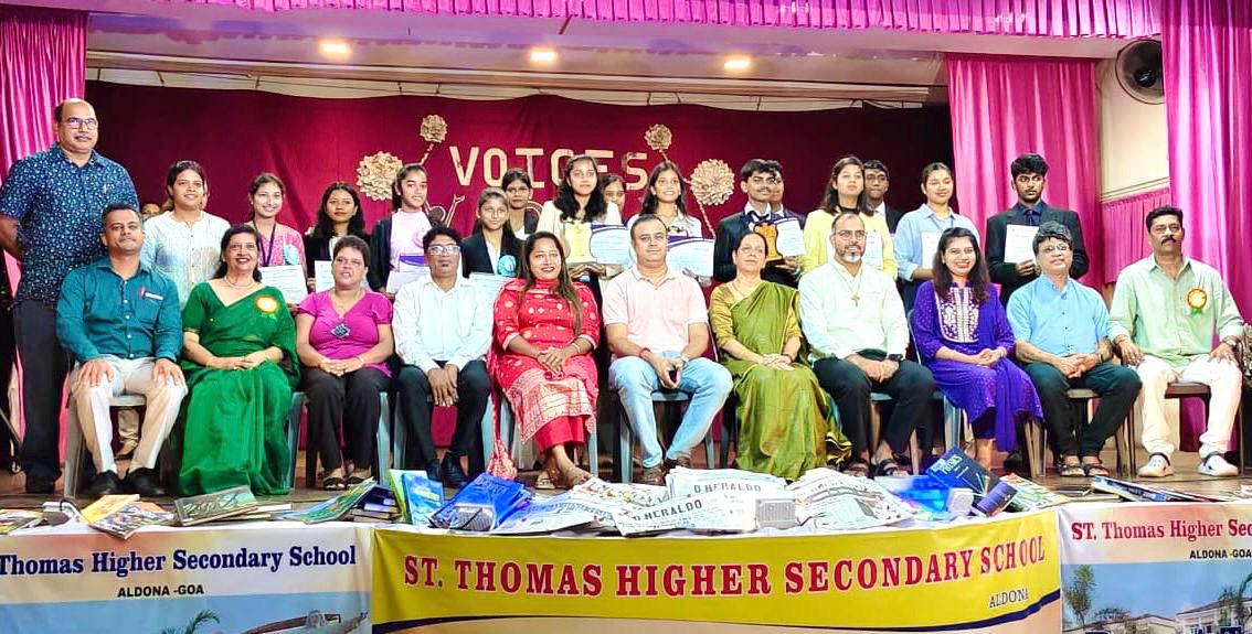 गोवा खबर : सेंट थॉमस उच्च माध्यमिक विद्यालय , हळदोणा आणि पालक-शिक्षक संघ यांच्या संयुक्त विद्यमाने “Voices of Hope: News that Inspires, Uplifts, and Ignites Optimism” या संकल्पनेवर आधारित अखिल गोवा आंतर-उच्च माध्यमिक विद्यालय बातमी सादरीकरण स्पर्धा विद्यालयाच्या सभागृहात यशस्वीरीत्या पार पडली.