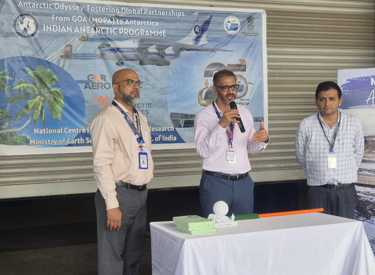 गोवा खबर : केंद्रीय भूविज्ञान मंत्रालयाच्या अखत्यारीतील ध्रुवीय आणि महासागरी संशोधन विषयक राष्ट्रीय केंद्राने (एनसीपीओआर) गुरुवार दिनांक 2 ऑक्टोबर रोजी गोव्यातील मोपा येथील मनोहर आंतरराष्ट्रीय विमानतळावरून अंटार्क्टिकाला जाणाऱ्या ऐतिहासिक थेट हवाई कार्गो विमानाला एनसीपीओआरचे संचालक डॉ.थंबन मेलोथ यांनी हिरवा झेंडा दाखवून या हवाई कार्गो मोहिमेचा प्रारंभ केला.