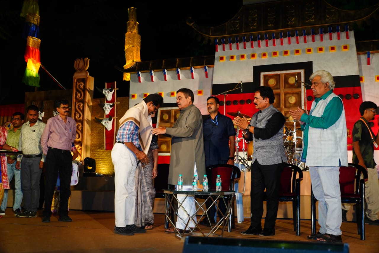 याप्रसंगी संपूर्ण महोत्सवाचे कोरिओग्राफर तरुण प्रधान व बांबूशिल्प कलावंत मुकेश सायकिया यांचा गडकरींच्या हस्ते सत्कार करण्यात आला.