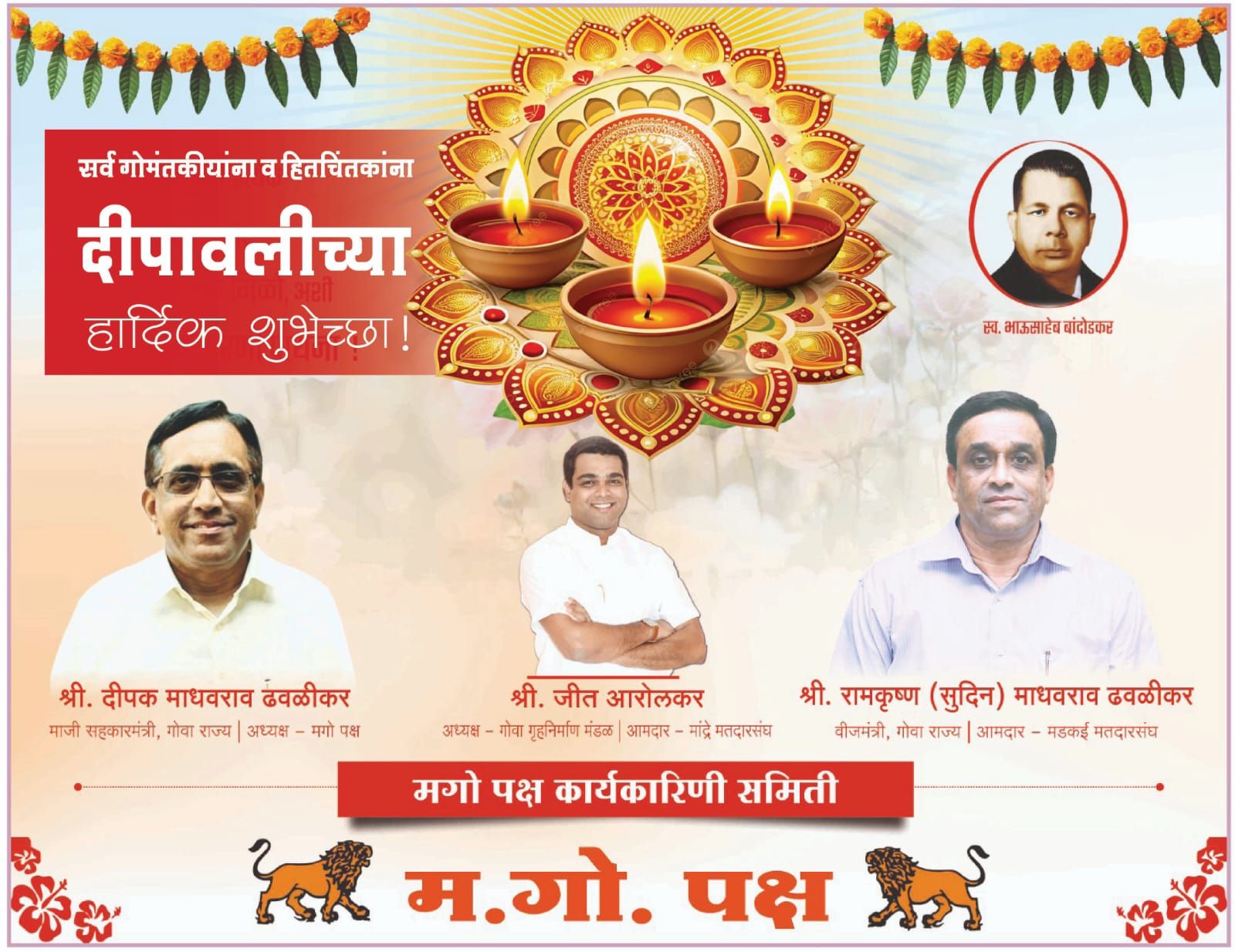 गोवा खबर मगो पक्षा तर्फे गोमंतकीयांना दीपावलीच्या हार्दिक शुभेच्छा! Published 5 months ago on October 20, 2025 By Devendra Walavalkar Spread the love मगो पक्षा तर्फे गोमंतकीयांना दीपावलीच्या हार्दिक शुभेच्छा! Related Topics:Featured Up Next FC Goa take on Asian giants Al Nassr in a key clash Don't Miss दिवाळीच्या मनःपूर्वक शुभेच्छा!Dr. Pramod Sawant Devendra Walavalkar Continue Reading You may like Guardian Angel SC Stun Goa Police with Hard-Fought Victory कोकणातील गोड्या पाण्यातील मासेमारीसाठी जलाशय आणि अमृत सरोवरांचा वापर राष्ट्रपतींची अयोध्या येथील श्री राम जन्मभूमी मंदिराला भेट; रामलल्लाचे दर्शन मुंबई सीमा शुल्क विभागाच्या एअर इंटेलिजन्स युनिटने छत्रपती शिवाजी महाराज आंतरराष्ट्रीय विमानतळावर अंमली पदार्थांच्या तस्करीचे प्रयत्न हाणून पाडले गोव्यासाठी हवामान इशारा : आज वादळी वाऱ्यासह पावसाची शक्यता AAP’s Geetesh Naik Appeals Bhandari Samaj To Vote For Someone Who Understands Struggles of a Common Man, and Reject Familyraj