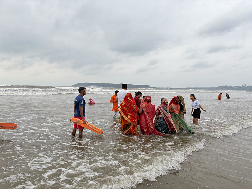 As devotees gathered along the shoreline to offer their evening prayers during Chhath Puja, Drishti Marine lifesavers stood on vigil, nearby ensuring the well-being and safety of worshippers.