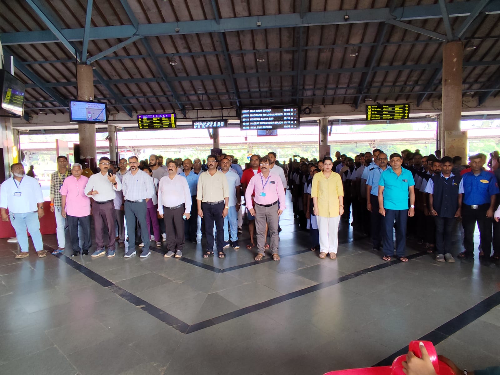 As part of the nationwide observance, Mass Singing of the full version of Vande Mataram was held across the Konkan Railway network. The mass singing at the Office of ED(SP & BD), Madgaon, was led by Shri Joseph George, ED(SP & BD), with active participation of executives and staff. Similarly, employees and passengers joined the mass singing at Pernem, Thivim, Karmali, Verna, Majorda, Madgaon, Balli, Canacona and Loliem railway stations. The echoes of Vande Mataram also resonated across stations where the instrumental version of the song was played, creating an atmosphere of unity and patriotic fervour.