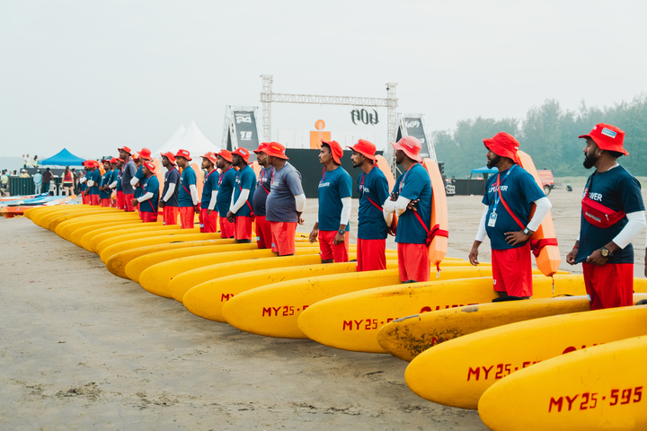 The organisers of IRONMAN 70.3 Goa, India’s flagship endurance race, had tied up with Drishti Marine to anchor safety operations for the event’s opening swim leg — a 1.9 km test of stamina in the Arabian Sea off Miramar beach. Drishti Marine, the state’s official lifesaving agency, fielded 58 trained lifesavers backed by seven jet skis, 30 rescue surfboards, two rigid inflatable boats (RIBs), and four vehicles, including medical and logistics support units. Two beach managers oversaw coordination between rescue teams and event officials.