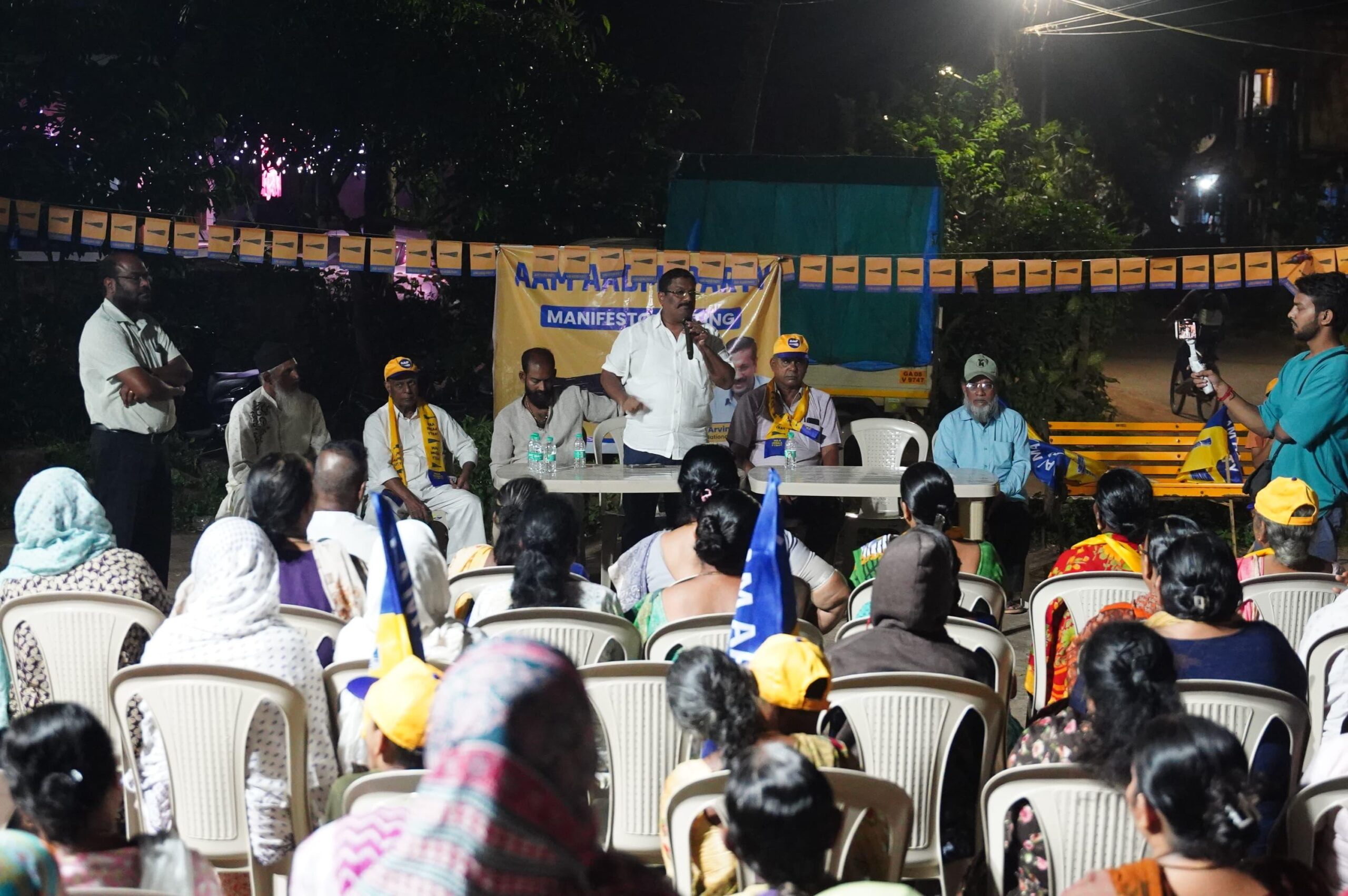 Capt. Venzy Viegas highlighted AAP’s past work—free clinics, health camps, and continuous issue-based activism—to show what the party can do even without holding local power.