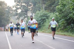 The 32km race saw the most intense competition on Sunday, with the just a few seconds separating the top two male runners. Sachin Poojary of Udupi finished a strong second in 1:49:12 hrs. Hariram Maurya of Wasind, Maharashtra was third in 2:04:44 hrs.