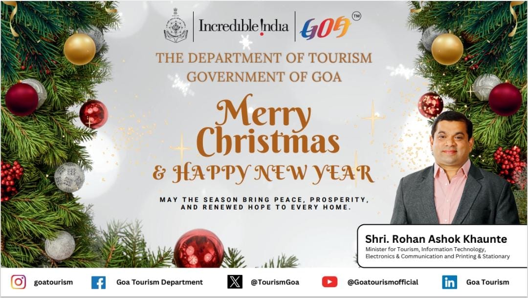 गोवा खबर “May the blessings of Christmas bring happiness to every home. Wishing you all a Merry Christmas filled with peace and joy.” : Rohan Ashok Khaunte Published 3 months ago on December 25, 2025 By Devendra Walavalkar Spread the love “May the blessings of Christmas bring happiness to every home. Wishing you all a Merry Christmas filled with peace and joy.” : Rohan Ashok Khaunte Rohan Khaunte #Christmas #PeaceAndJoy #Goa Related Topics:Featured Up Next आरोग्य मंत्री Vishwajit P RANE आणि आमदार Dr. Deviya Rane यांच्या तर्फे गोमंतकीयांना नाताळाच्या हार्दिक शुभेच्छा! Don't Miss Wishing all Goans a very Merry Christmas! Devendra Walavalkar Continue Reading You may like Guardian Angel SC Stun Goa Police with Hard-Fought Victory कोकणातील गोड्या पाण्यातील मासेमारीसाठी जलाशय आणि अमृत सरोवरांचा वापर राष्ट्रपतींची अयोध्या येथील श्री राम जन्मभूमी मंदिराला भेट; रामलल्लाचे दर्शन मुंबई सीमा शुल्क विभागाच्या एअर इंटेलिजन्स युनिटने छत्रपती शिवाजी महाराज आंतरराष्ट्रीय विमानतळावर अंमली पदार्थांच्या तस्करीचे प्रयत्न हाणून पाडले गोव्यासाठी हवामान इशारा : आज वादळी वाऱ्यासह पावसाची शक्यता AAP’s Geetesh Naik Appeals Bhandari Samaj To Vote For Someone Who Understands Struggles of a Common Man, and Reject Familyraj