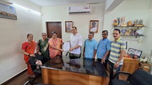 पर्यटन मंत्री रोहन खवटे यांना निवेदन देताना रणरागिणीच्या राजश्री गडेकर आणि इतर.