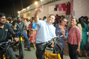Goa Khabar : Transforming the Chhatrapati Shivaji Maharaj Marg, Porvorim into a lively, people-centric space, the seventh edition of NoMoZo (No-Motor Zone) took place on Sunday, January 11, 2026, promoting sustainable urban living through reduced vehicular movement and community engagement. The annual event provided a platform for startups and student innovators to showcase solutions rooted in sustainability, responsible innovation and technology-driven problem-solving.