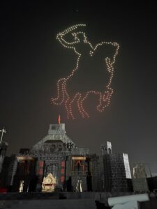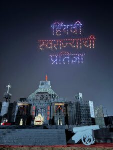 या कार्यक्रमाचे आणखी एक मोठे आकर्षण म्हणजे 300 ड्रोनच्या साहाय्याने सादर करण्यात आलेला भव्य ड्रोन शो. रात्रीच्या आकाशात भगवा ध्वज, रायगड किल्ला, महाराजांचा राज्याभिषेक यांसारख्या ऐतिहासिक प्रतिमा साकारल्या गेल्या. या आकर्षक दृश्यांनी प्रेक्षकांची मनं जिंकली आणि उत्सवाला आधुनिकतेची जोड दिली.