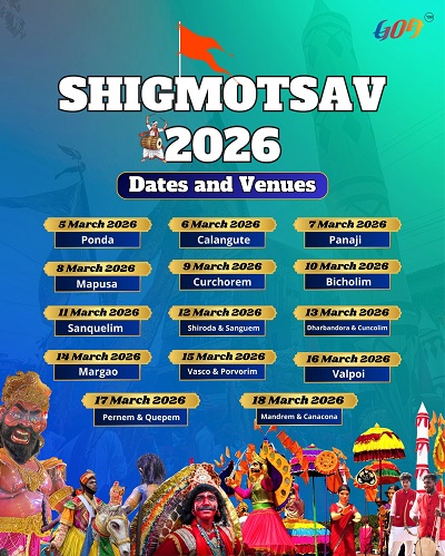 गोवा खबर # ADVT Shigmo returns to bring Goa alive in its most festive spirit. 5th March to 18th March 2026 Published 2 weeks ago on March 5, 2026 By Devendra Walavalkar Spread the love #ADVT A celebration of culture, tradition and community. From vibrant parades to folk performances and colours that light up every street, Shigmo returns to bring Goa alive in its most festive spirit. 5th March to 18th March 2026 Across various locations in Goa #GoaTourism #RegenerativeTourism #Shigmo2026 #Shigmotsav #FestivalsofGoa #Goa Related Topics:Featured Up Next Global Accolades mark Goa’s presence at ITB Berlin 2026 Don't Miss एनआयएफटीईएम -के यांनी कॅनडाच्या सास्काचेवान विद्यापीठाबरोबर केला सामंजस्य करार Devendra Walavalkar Continue Reading You may like Guardian Angel SC Stun Goa Police with Hard-Fought Victory कोकणातील गोड्या पाण्यातील मासेमारीसाठी जलाशय आणि अमृत सरोवरांचा वापर राष्ट्रपतींची अयोध्या येथील श्री राम जन्मभूमी मंदिराला भेट; रामलल्लाचे दर्शन मुंबई सीमा शुल्क विभागाच्या एअर इंटेलिजन्स युनिटने छत्रपती शिवाजी महाराज आंतरराष्ट्रीय विमानतळावर अंमली पदार्थांच्या तस्करीचे प्रयत्न हाणून पाडले गोव्यासाठी हवामान इशारा : आज वादळी वाऱ्यासह पावसाची शक्यता AAP’s Geetesh Naik Appeals Bhandari Samaj To Vote For Someone Who Understands Struggles of a Common Man, and Reject Familyraj