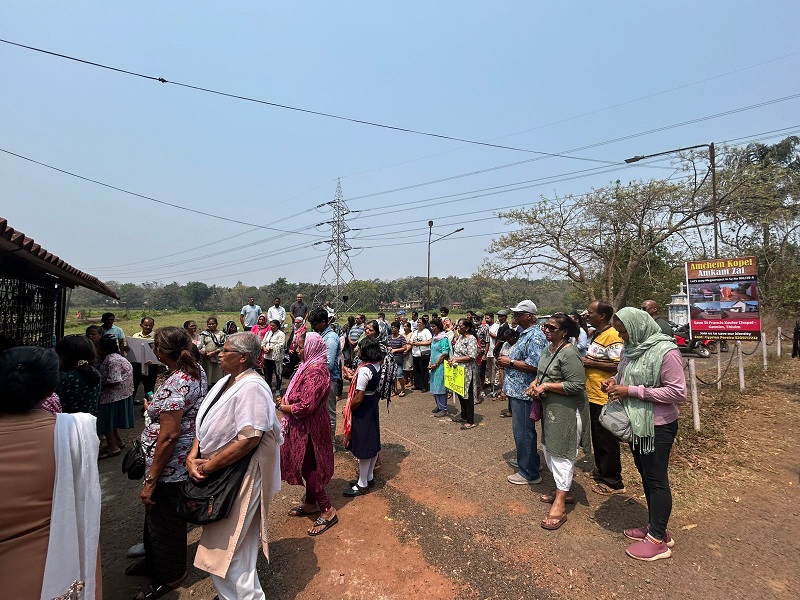 Hundreds of villagers from Gavoim and nearby areas gathered at the site to express their united opposition to the mega project, which they believe poses a serious threat to the heritage, environment, and peaceful character of the locality surrounding the historic chapel.