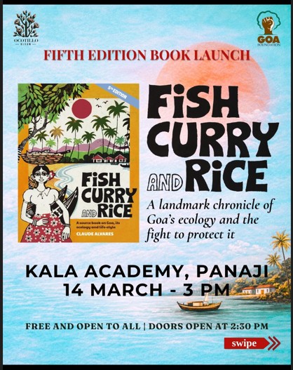 Goa Khabar : Goa Foundation (GF) will be releasing the fifth edition of their landmark, environmental book, “Fish, Curry and Rice” at the hands of Justice Ferdino Rebello at the Kala Academy, Panaji on Saturday, March 14 at 3pm. The event is free and open to the public.