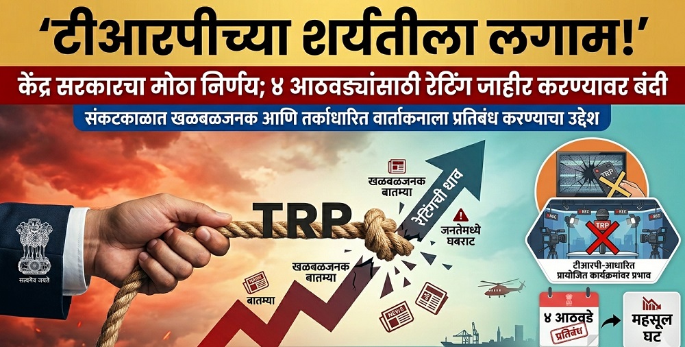 टीआरपीच्या शर्यतीला लगाम! केंद्र सरकारचा मोठा निर्णय; ४ आठवड्यांसाठी रेटिंग जाहीर करण्यावर बंदी