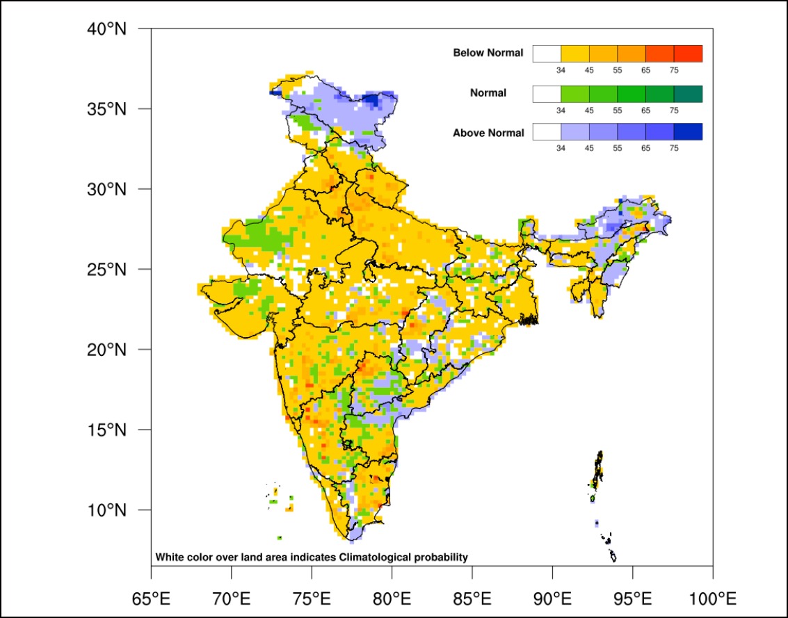 प्रादेशिक अंदाज: देशाच्या बहुतांश भागात सरासरीपेक्षा कमी पाऊस असेल. मात्र, ईशान्य भारत, वायव्य भारत आणि दक्षिण द्वीपकल्पातील काही भागांत पाऊस सामान्य किंवा सामान्यपेक्षा जास्त राहू शकतो.