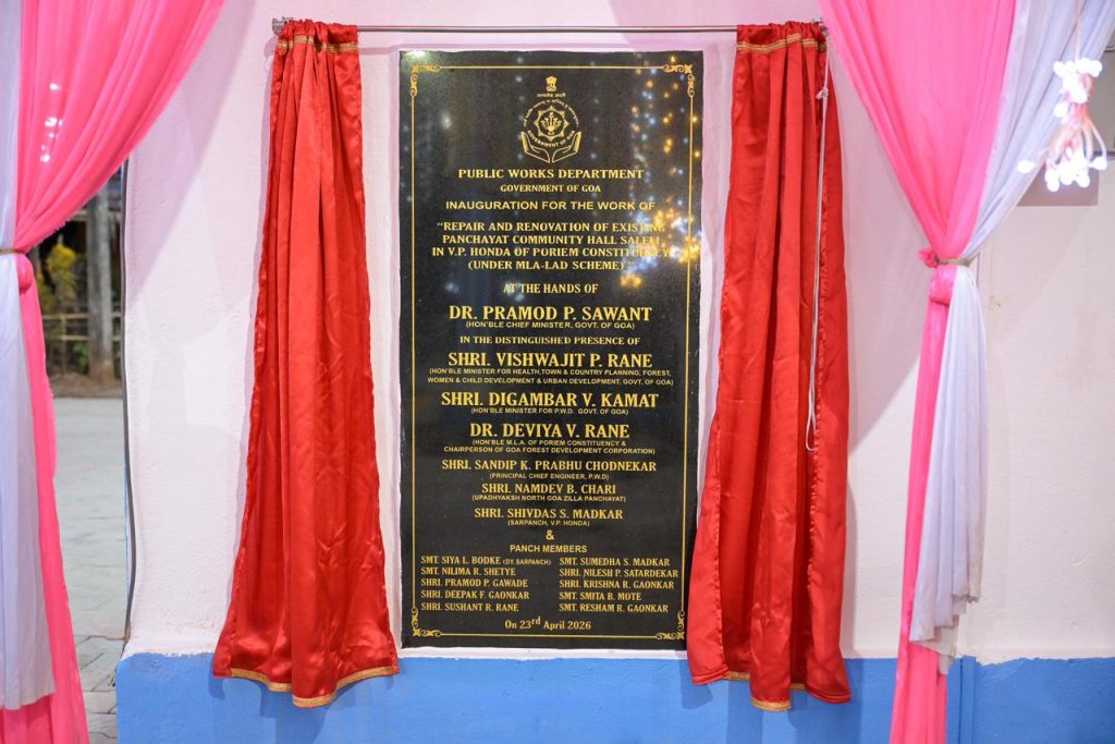 गोवा खबर : साळेली, व्ही.पी. होंडा येथे पंचायत कम्युनिटी हॉलचे नूतनीकरण पूर्ण करून त्याचे उद्घाटन करण्यात आले. आमदार डॉ. देविया राणे यांच्या हस्ते हा प्रकल्प साकारण्यात आला असून, MLA-LAD योजनेअंतर्गत सुमारे ८३.२३ लाख रुपये खर्चून या हॉलचे आधुनिकीकरण करण्यात आले आहे.