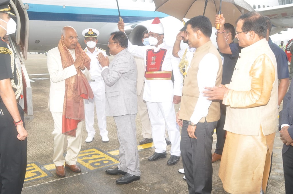 President of India Shri Ramnath Kovind, arrived in Goa. Governor, CM, MoS Tourism, welcomed the President.